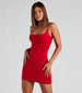 This fiery bodycon mini dress will add some spice to your night-out look! It features a sleeveless square neckline, trendy chain-link shoulder straps, and a short, curve-hugging silhouette. The smooth knit fabric offers plenty of stretch. Style this sexy mini dress with platform heels.