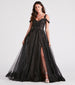 Glitter works its magic on the breathtaking Adele ball gown - a stunning option for prom, black tie galas, and formal celebrations! She features a lovely cold shoulder sweetheart neckline with delicate lace straps, a padded bust, an enchanting lace glitter bodice that leads to the A-line silhouette, and a sultry high front slit along her scallop lace floor-length hem. The ball gown is designed with a glitter lace mesh overlay with a smooth satin lining and no stretch. Complete the look with a gorgeous hair accessory and heels.