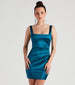 After midnight is when the fun begins! Look and feel sultry for it all in this satin mini dress featuring a sleeveless square neckline, tank-style straps, a form-hugging silhouette, and side pleating. Complete the look in little black heels.