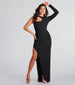 Want a gorgeous look for fancy events? The Aimee formal glitter long dress promises an effortlessly refined evening look. She features a fitted long sleeve, crew neckline, cleverly designed cutout shoulder detail, a slim silhouette, a high side slit, and a floor-length hem, crafted on shimmering glitter crepe fabric with a silky satin lining. Finish the look with earrings for a black tie gala or ball!