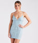 Who's that girl? It's you in the stunning Alexa party dress ready to hit the town for a Vegas bachelorette or dressy birthday celebration! She features a V-neckline with a nude mesh insert, spaghetti straps that create the customizable lace-up back, and a bodycon silhouette with a mini-length hem. The formal dress showcases dazzling all-over rhinestone embellishments in a figure-flattering pattern on mesh fabric with a stretchy knit lining. Complete the look in sassy stiletto heels and a clutch.