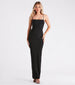 This maxi dress gives you a reason to get all dolled up! It features a sleeveless square neckline, adjustable spaghetti straps, an open strappy back with a lower ruched seam atop a sultry high slit, and a bodycon silhouette on slinky knit-lined fabric. Complete the look in rhinestone strappy heels for a cocktail party.