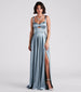 Feel like you're floating on clouds as you gracefully enter the room in the Angelica ball gown! Make a striking impression at formal dances, black-tie weddings, and galas. She features a sleeveless sweetheart neckline with tank-style straps, a lightly padded bust and keyhole accent, and a captivating lace-up back design. Her high waist seam leads to the flattering a-line silhouette with hidden side pockets to keep your hands warm, and a sultry front high-cut slit along the floor-length hem. The formal gown is composed of a lined silky lustrous satin fabric with a subtle sheen and moderate stretch. Style with a beaded evening clutch and platform heels to complete your dressy look!