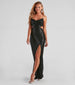 Lines of sparkly sequins add shine and a glamorous look to the Annie formal dress for a gala, charity dinner, or dressy event! She features a sleeveless, v-neckline, sleek bungee spaghetti straps that lead to her open-back with a lace-up design and sultry waist cutouts along the high-waist seam. Her slim, form-hugging silhouette offers a peek of skin on the front high-cut slit atop a maxi-length hem. The special event dress is composed of a sequin-knit fabric with a knit lining and a moderate stretch. Complete the look with a chic clutch and heels.