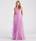 Feel like absolute royalty in the dreamy Ariana ruffled mesh formal dress that will create an enchanting look for any fancy affair! She features a strapless sweetheart neckline, a fitted bodice with flexible boning inserts to provide structure and ruched detailing, a high waist seam, a floor-sweeping hem with a tiered ruffled mesh design, and a flowy A-line silhouette. The airy lightweight mesh fabric includes a full-length knit lining. Complete the look with radiant rhinestone earrings.