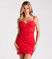 Things heat up when the sun goes down with the Ashylnn party dress around! She features a sleeveless sweetheart neckline, non-slip grip lining, a built-in padded underwire bust eliminating the need for a bra, adjustable spaghetti straps, and a flattering bodycon silhouette with a wrap-style mini-length hem. The party dress is composed of delicate floral lace fabric for a romantic vibe and has a stretchy knit lining. Complete the look with a statement choker necklace for a cocktail party or dressy birthday bash!