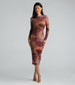 Attract and allure in this marble print midi dress that puts your curves on display! It features a high crew neckline, long fitted sleeves, a midi-length hem with a form-hugging silhouette, and an all-over trendy marble print pattern. The sheer mesh fabric includes a full-length sleeveless knit lining. Style this mid-length dress with clear heel mules for a cool-girl vibe for a rooftop bar!