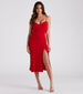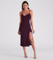 You'll be unforgettable once they see you in this crepe slip dress perfect for casual parties and celebrations! It features a sleeveless V-neck, spaghetti straps, a form-hugging silhouette, and a sultry front slit along the midi-length hem. Style with simple hoop earrings to complete the look!