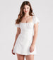 Enter looking like bae just breezed in! Capture cuteness in this cotton short dress featuring short puff sleeves, a square neck, an open lace-up back, and an A-line silhouette. Style with a trendy crossbody bag and heels.
