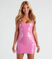 Bring the glam vibes with this sleek faux leather mini dress! It features a sleeveless square neckline, thin halter straps, an underbust seam, a mini-length hem, and a curve-hugging bodycon silhouette to flaunt your figure. The patent faux leather fabric has minimal stretch. Complete your party look with pink platform heels.