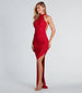It's not a party til you arrive in the sparkly Belinda formal glitter long dress! She features a classy halter neckline with button closure, a stunning open strappy back design, side and back ruched seams to accentuate your curves along her slim silhouette, and a long hem with a sexy side slit. The formal maxi dress is crafted from a glitter knit fabric that leaves every room shimmering! Complete the look with a clutch and earrings for a red carpet event or gala!