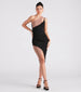 Let your body do the talking in this curve-flaunting bodycon midi dress for a night out! It features a sleeveless one-shoulder neckline, dual shoulder straps with a cutout, a pleated side seam, asymmetrical wrap hem, and is designed with a color block pattern. Complete the look with stiletto heels.