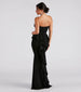 Elegantly chic, the Breanne mermaid formal dress will have you radiating red-carpet energy. She features a strapless sweetheart neckline, a fitted bodice with flexible boning inserts and a high waist, a ruffled back accent that cascades down the length of the dress, a floor-sweeping hem, and a form-hugging mermaid silhouette. The formal maxi dress is composed of a crepe fabric and offers a moderate stretch. Style with a rhinestone jewelry set and stiletto heels for a black-tie affair.