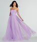 Designed with sparkly glitter polka dots and a full skirt made for twirling, the Brie tulle ball gown brings next-level shine to prom, birthday celebrations, and balls! Crafted from a glitter polka dot tulle fabric with a full stretchy knit lining for a delicate and elegant touch to this stunning gown. Her strapless neckline, ruched bodice, and A-line silhouette create a flattering fit, while the flexible boning offers support and is complemented by the detached sheer gloves. The bonded floor-length hem adds a touch of glamour and volume to this mesmerizing gown. Complete the look with an elegant necklace and earrings set.
