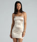 Bring the glitz and glamour to your night out look with this fabulously flashy rhinestone mini dress! It features a sleeveless square neckline, spaghetti straps, an alluring open back with a cross-back lace-up strappy design, a mini-length hem, and a bodycon silhouette to flaunt your figure. The satin-knit fabric features all-over rhinestone embellishments for a gorgeous shine. Style with stiletto heels and a sleek clutch.