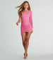 Bring the glitz and glam to your fabulous night out in this glitter mini dress! Designed with a stretchy glitter knit fabric, this mini-length dress is shaped with an asymmetric one-shoulder neckline with a long balloon-style sleeve to add that bold flair. The bodycon silhouette is accented with a ruched side design with an adjustable tie to accentuate your curves. Complete the look with metallic heels for a birthday or bachelorette party!
