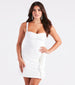 Everyone will be calling you sweet in this short A-line dress as the bride-to-be or graduate! It features a sleeveless sweetheart neck, tank shoulder straps, a ruched bust seam, a flattering A-line silhouette, asymmetrical front ruffle trim, and a short-length hem. Complete the look with earrings and block heels.