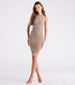 This adorable striped tank mini dress is the perfect casual style for a subtly elevated look! It features a sleeveless crew neckline, tank shoulder straps, a mini-length subtle curved hem, and a bodycon silhouette that offers a form-hugging fit. The striped ribbed knit fabric has plenty of stretch. Pair with strappy sandals.