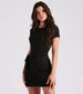 Update your wardrobe with this cute and casual mini dress that is a stylish staple! It features a crew neckline, short sleeves, a trendy wrap-front design at the waist with a tie closure, a form-hugging fit, and a mini-length hem. The soft brushed knit fabric offers plenty of stretch for comfort. Complete the look with ankle booties.