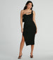 Keep casual yet classy in this must-have sleeveless midi dress perfect for your next weekend plans! This sleek and stylish dress features a trendy one-shoulder neckline and a chic cutout accent. The bodycon silhouette and side slit not only add a flirty touch but also flatter your figure on the stretchy ribbed knit fabric. Complete the look with a chic clutch and heels.