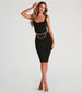 You'll make a chain reaction by stepping out in this rib knit tank midi dress featuring a sleeveless square neck, tank shoulder straps, a detachable chain belt with lobster clasp closure, and a form-hugging silhouette. Complete the look in a chic blazer for happy hour!
