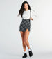 Check this plaid mini skirt into your weekly lineup! Featuring a mid-rise waist with suspender straps with tie closure, a bodycon silhouette, and a flirty slit along the hem. Style with a basic tee and boots for a cute complete look!