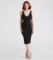 This form-fitting midi dress is perfect for creating that chic everyday style! It features a sleeveless V-neckline with a matching V-back design, tank shoulder straps, a fitted silhouette that will hug your curves, and a midi-length hem. The ribbed knit fabric offers plenty of stretch. Complete the look with strappy mules.