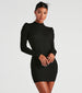Showcase chic perfection in this classic ribbed knit sweater dress. It features a mock neckline, long fitted sleeves with puff accents at the shoulders, and a short, curve-hugging silhouette. The knit fabric offers plenty of stretch. Style with knee-high boots.
