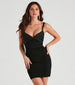 This curve-hugging mini dress will look chic for a romantic dinner date. It features a sleeveless sweetheart neckline with a V-wired center design, a pleated fabric overlay at the bust, thin shoulder straps, and a short, fitted, bodycon silhouette. The smooth ponte knit fabric offers a moderate stretch. Complete the outfit with strappy stilettos.