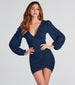 Shine bright in this stunning glitter mini dress! Featuring long peasant sleeves, a plunge V-neckline, a flirty cut-out back and tie closure, ruched seams and bodycon silhouette, and a mini-length hem, you'll look and feel chic, glamorous, and confident. Complete the look with a clutch purse for a cocktail party or event!