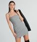 Stay classic and chic in this plaid mini dress! Featuring a flattering square neckline and spaghetti straps, this bodycon dress also has a chic side pleated seam and a faux wrap mini-length hem. Complete the look in a sleek moto jacket and boots.