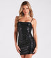Strut into the club with your head held high in this velvet mini dress sure to impress! It features a sleeveless square neckline, adjustable spaghetti straps, a checkered sequin-knit pattern, and a bodycon silhouette. Complete the look in trendy chunky platform heels.