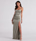 If you love a simple yet stunning look, the Courtney satin formal dress is the style for you. She features a sleeveless cowl neckline, spaghetti straps that lead to an eye-catching cross-back design, a thin strap with a tie-front design at the waist, a hip-hugging fit that leads to a floor-length A-line silhouette, and an alluring thigh-high side slit. The smooth satin-knit fabric offers a moderate stretch. Complete the outfit with clear heels for a fancy party.