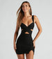 Your search for a sexy club look ends here with this V-neck short dress! It features a sleeveless bodice with wide shoulder straps, a criss-cross cutout, a low-cut back, a bodycon silhouette, and a slit accent on the hem. Style with strappy heels.