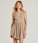 Everyone will end up with a crush on you in this sleeveless skater dress perfect for beach days or backyard parties! This playful dress features adjustable drawstring shoulder straps and a flattering V-neckline and back design. The fitted waist and skater silhouette create a feminine and flirty look along the short-length hem. Complete the look in heeled sandals.