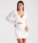 You'll be coveting this crepe short dress to wear for all of your dressy occasions! The dress features chiffon peasant sleeves, a V-neck, cutouts along the wrap waist, and a short, curve-hugging silhouette. The crepe fabric offers a moderate stretch. Perfect for styling with fringe earrings and heels.