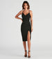 You'll enjoy walking past every mirror in this v-neck midi dress designed to flaunt your curves! It features a sleeveless surplice v-neckline, spaghetti straps, a form-fitting silhouette, and a front-slit accent. Complete the look in sleek stiletto heels for a dressy event.
