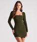 This cute and classic pleated mini dress is perf for date nights or getting drinks with the girls! It features a flattering square neckline, long fitted sleeves, pleated detailing at the waist, and a short, curve-hugging fit. The smooth crepe fabric offers a moderate stretch. Style with your favorite pair of mules.