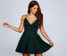 Cute and classic will be your vibe as you twirl the night away in this adorable skater dress! It features a sleeveless V-neckline, a padded bust, spaghetti straps, and a short skater skirt with a fit and flare silhouette. Style this dress with a rhinestone necklace and neutral block heels.
