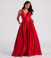 Channel timeless elegance in a modern style in the breathtaking Darcie satin ball gown destined to be your date for prom, galas, and formal ceremonies! She stuns in a sleeveless V-neckline, a lightly padded bust, adjustable shoulder straps, a flirty chiffon tie-back design, an A-line silhouette, hidden side pockets for keeping your hands warm, and a floor-sweeping hem. The ball gown is composed of a sleek satin woven fabric with multi-layers of tulle and woven lining creating a voluminous effect. Complete the look with a charming rhinestone bracelet.