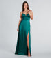You'll be a divine vision of beauty in the Darla formal satin long dress perfect for wedding guests or fancy holiday parties! She features a scoop neckline with a V-wired insert, spaghetti straps, a flattering A-line silhouette, and a front slit that leads to her floor-length hem for a dramatic finish. Crafted from smooth satin fabric, the formal long dress offers a luxe sheen and minimal stretch. Complete the look with a choker and heels.