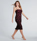 This chic velvet burnout midi dress radiates date night energy! It features a sleeveless square neckline, adjustable spaghetti straps, ruching down the side seams, a midi-length hem with a high-cut side slit for a sultry flair, and a form-hugging silhouette. The lined mesh fabric features an alluring velvet burnout floral pattern. Style this mid-length dress with strappy stilettos.