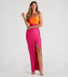 Paint the town vibrant hues showing up to the party in the Denise formal long dress! She features a sleeveless square neck, spaghetti straps, and a side pleated seam that accentuates your curves along her form-hugging, asymmetrical slit wrap-long hem. The formal dress is composed of a slinky knit fabric with moderate stretch. Complete your eye-catching look in PVC strap block heels for a celebration!