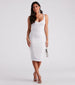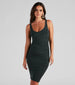 Look fabulous in a flash wearing this sleeveless midi dress for dinner and drinks! It features a showstopping bodycon silhouette, a V-neck, tank straps, and side ruched seams that hug every curve like a glove. Complete the look with chic stiletto heels.