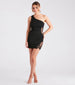 It's no accident you've fallen for this crepe mini dress - a stunning style for dressy birthdays and cocktail parties! The short dress features a sleeveless one-shoulder neckline with a wide shoulder strap, a bodycon silhouette, a side pleated seam, and sheer eyelash lace inserts along the side, back, and hem. Complete the look with fringe earrings.