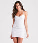 Create a divine charm in this lace mini dress as the bride-to-be or an all-white party! It features a sleeveless V-neckline, spaghetti straps that lace up along the open back, and a bodycon silhouette. Complete the look in sleek platform heels.