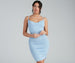 Catch looks not feelings. This sultry mini dress features sleek spaghetti straps, a cowl neck, side ruching to accentuate your curves, and an open back with cross straps. Complete the look in lucite mules.