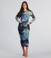 This alluring abstract print midi dress is a stylish pick for a dinner date downtown! It features a mock neckline, long fitted sleeves, a midi-length hem, a form-hugging silhouette, and an all-over abstract multi-print pattern. The sheer and stretchy mesh fabric includes a sleeveless full-length knit lining with adjustable spaghetti straps. Pair this trendy midi dress with gold hoops and clear heels.