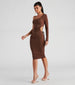 You'll draw all the attention to you in this one-shoulder midi dress perfect for a casual lunch with friends! The dress features a single long sleeve, an adjustable drawstring waist cutout, a side ruched seam, and a form-hugging fit. Complete the look in chic lattice booties.