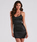 This dreamy satin mini dress will have you feeling date night-ready! It features a sleeveless sweetheart neckline with a sheer lace trim bust, spaghetti straps that cross along the open back, side pleating, and a bodycon mini-length silhouette. The smooth satin-knit fabric offers a moderate stretch. Complete the look with chunky platform heels.